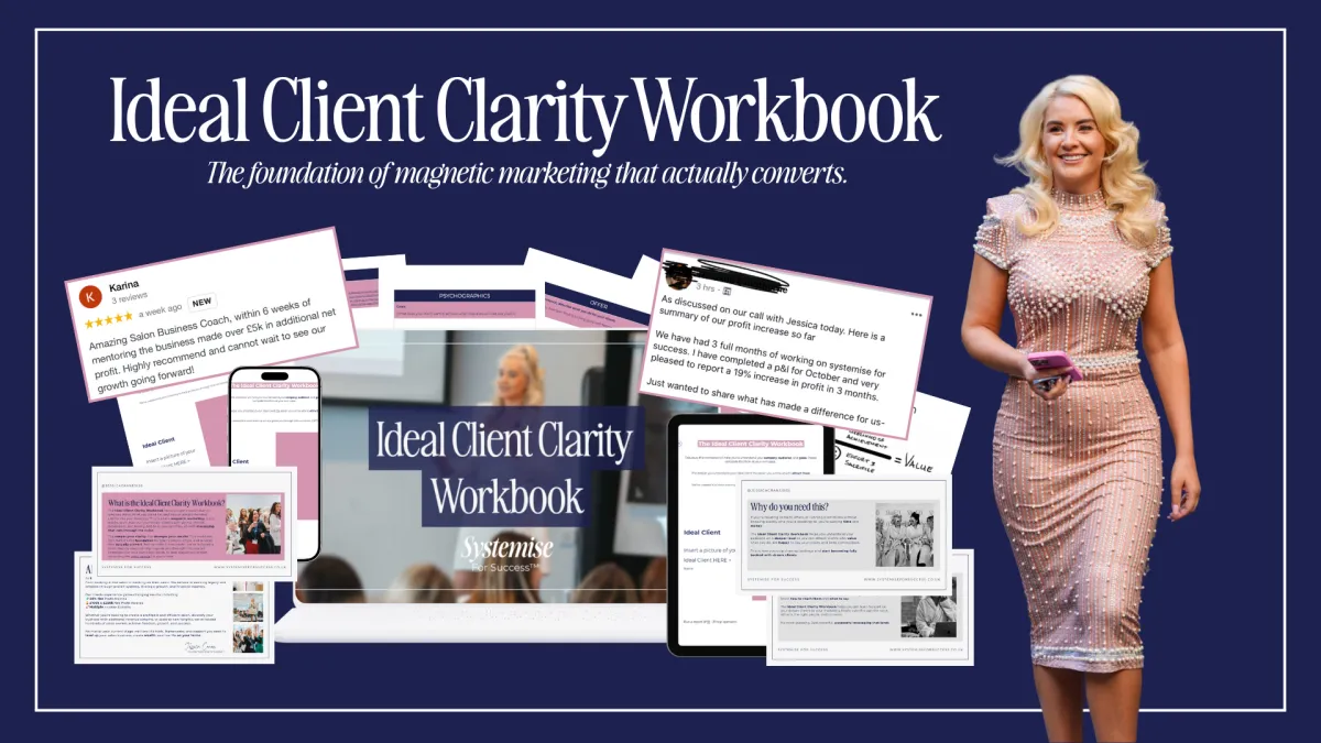 An in-depth session with award-winning salon coach Jessica Crane, walking you through the Ideal Client workbook that has helped hundreds of salon owners increase revenue and fully book their teams without burning out.